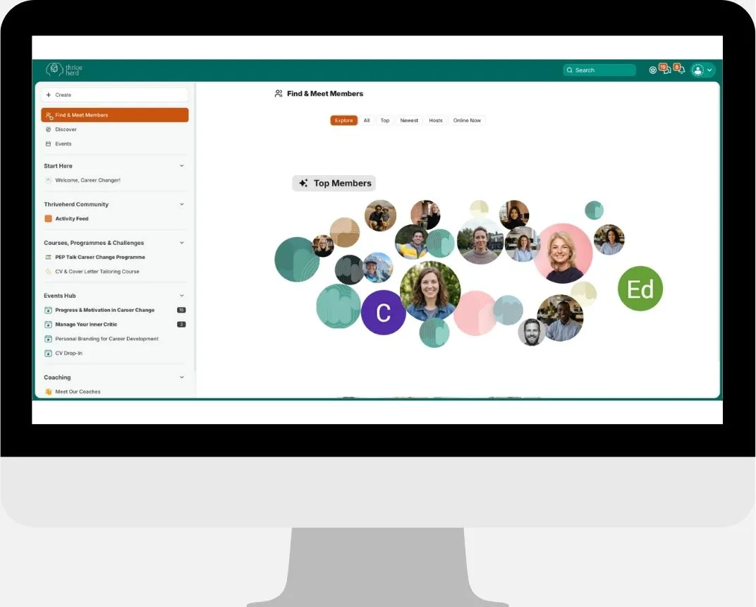 Thriveherd is a facilitated career community designed for ongoing growth, not a generic forum or motivational space. It's built around real-world constraints and the pace of actual change, where reflection, practice and connection matter more than posturing or status.